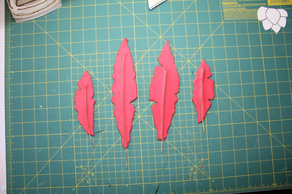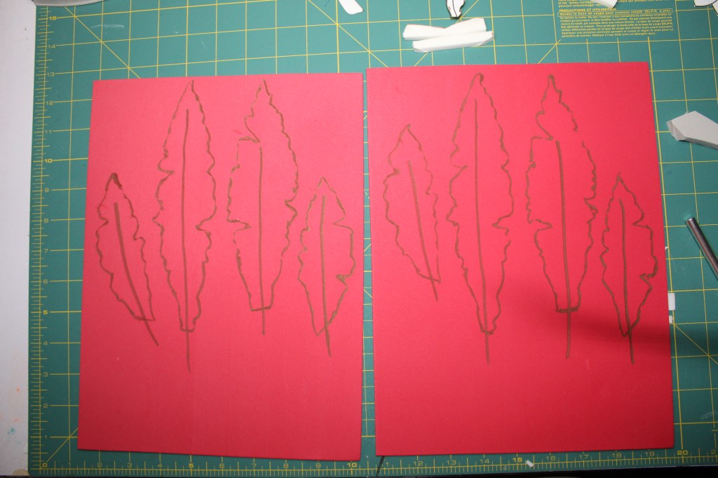 Next what the leaf beard. I separated the pattern and transferred it onto 2mm foam. I did draw and arrow on each leaf to show what direction it should be when I glued it all together.