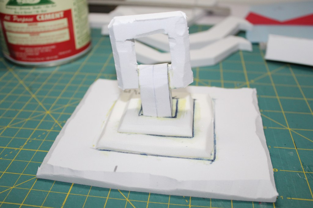 Cut out one of the large base rectangles out of 10mm foam to form the top of the lantern. cut out the Top 2 and Top 3 out of 6mm foam. Glue these into the center of each rectangle . Stack the smaller on top as you build up. The chain and the base of the chain was make from  2,10mm foam stuck together. Once the top was done I rounded some of the edges with my utility knife. Once I got the look I wanted I attached the bottom of the handle to the outside of the chain.