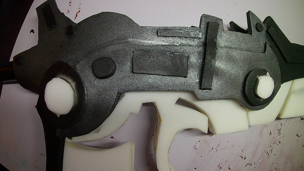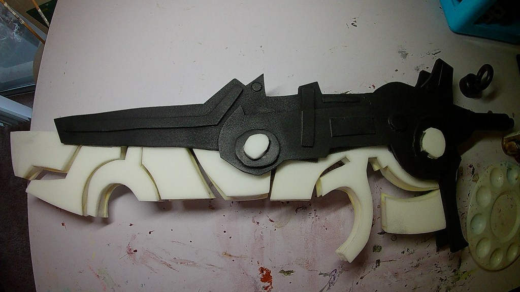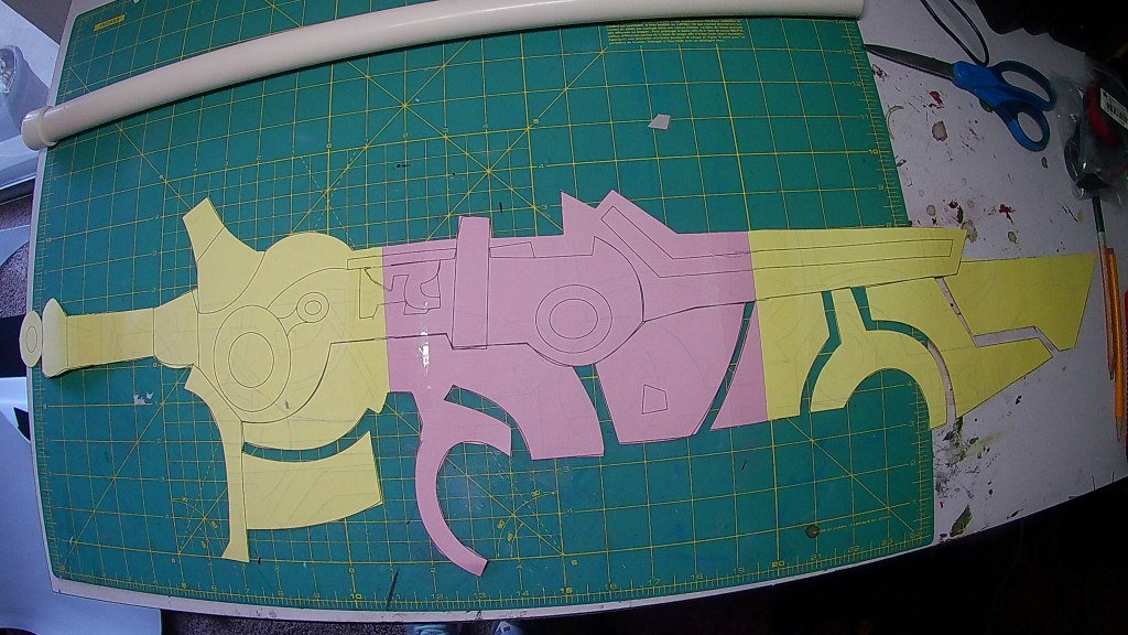 Next I took the body section and cut out 2 sides out of 8mm foam. I then cut the pattern apart even more for the detail pieces. Some of the circle pieces I use Plastazote because I added lights to the body section.
