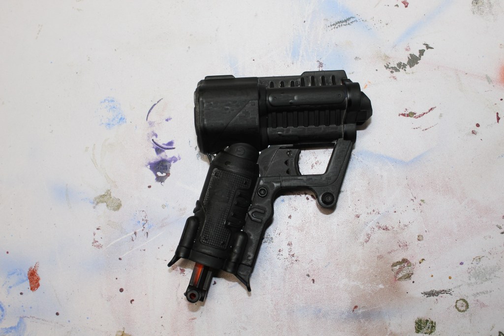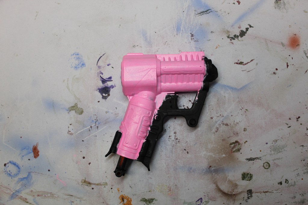 We moved to a new home last month and I finally got my workspace in order. I am have been trying to find some small projects to work on since it doesn’t like there will be any con any time soon. We do have a bucked full of nerf guns I decided to repaint some of them.